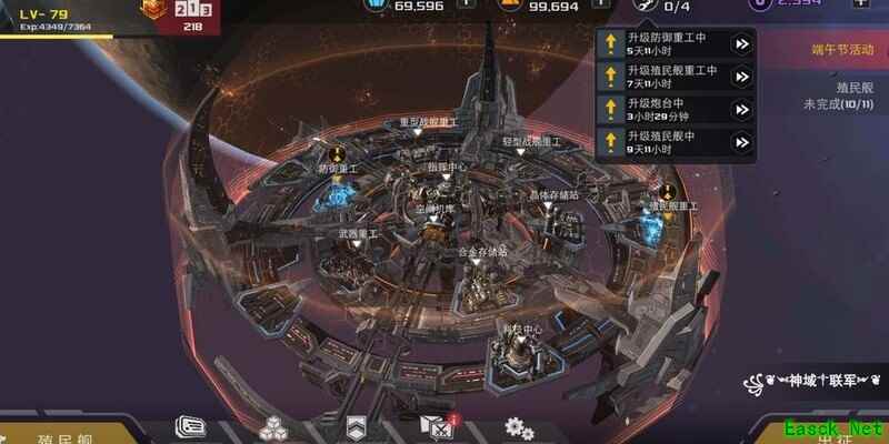 机器人持续运作,优先发展建筑与殖民,精炼资源,后期强化舰炮升级。