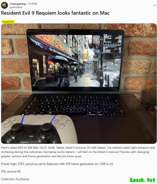 卡普空方面没有出现发售延期,《生化危机:安魂曲》如期推出,并且已经成为PC玩家的热门选择,因为它打破了该系列在Steam平台的最高同时在线玩家纪录。遗憾的是,这家日本游戏开发商没有为Apple Silicon Mac推出原生移植版本,但这并没有阻止玩家在自己的设备上测试这款3A游戏。一名使用搭载M4 Max芯片的MacBook Pro的用户表示,在调整部分设置后,他得到了可观的帧率表现。