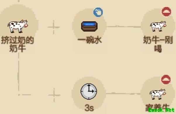 将一碗玉米喂给奶牛,3秒内会产下小牛并转化为可挤奶的奶牛,超时则变回普通牛。通过喂水可恢复能量,持续获取牛奶。