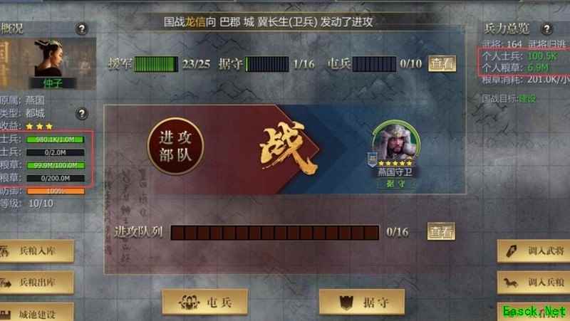 驻守城池需派遣部队,不限定五名武将。驻防武将不可移动,期间消耗体力,参与战斗可获得战功与功勋。