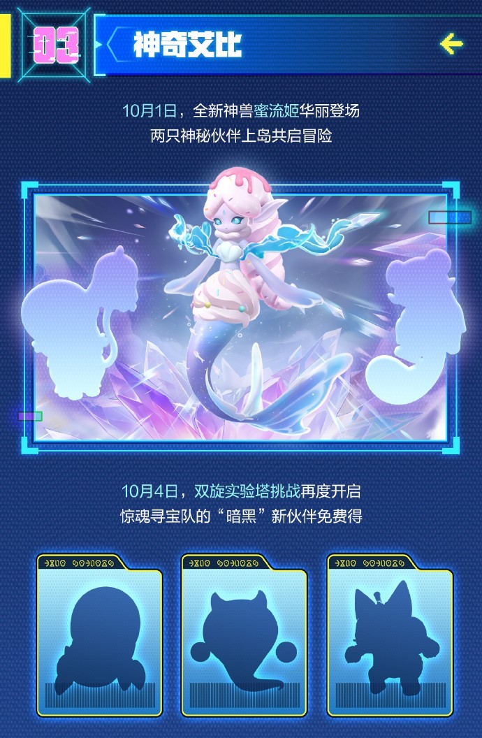 10月1日,全新神兽蜜流姬华丽登场!10月4日,双旋实验塔挑战再度开启,惊魂寻宝队的“暗黑”新伙伴免费得!