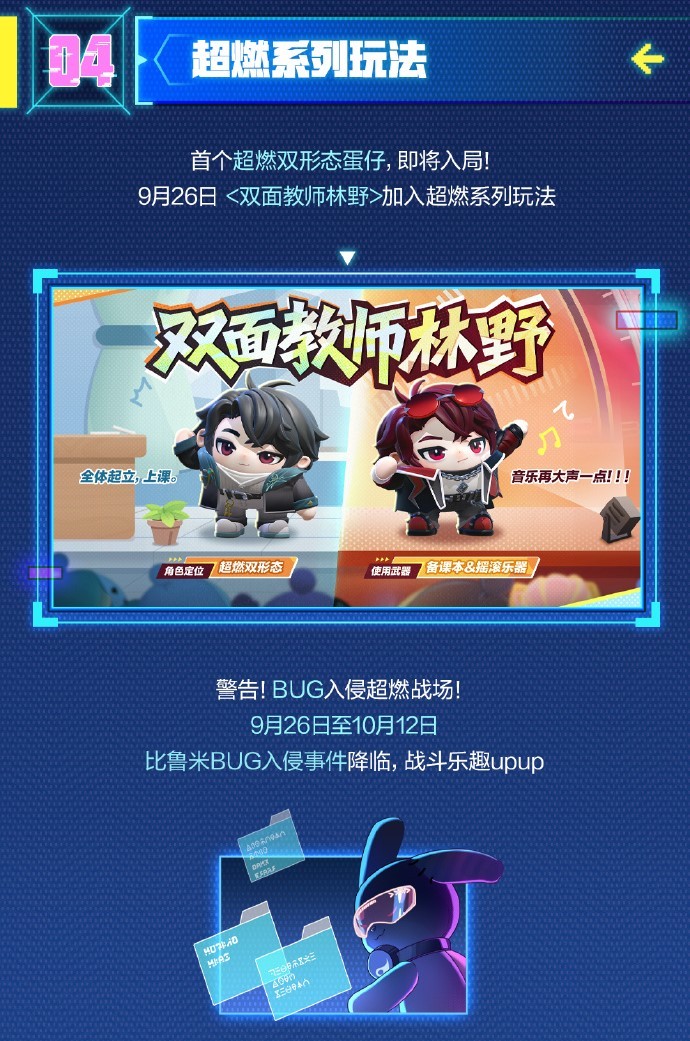 9月26日,超燃双形态【双面教师林野】上线,比鲁米大人BUG入侵事件降临!