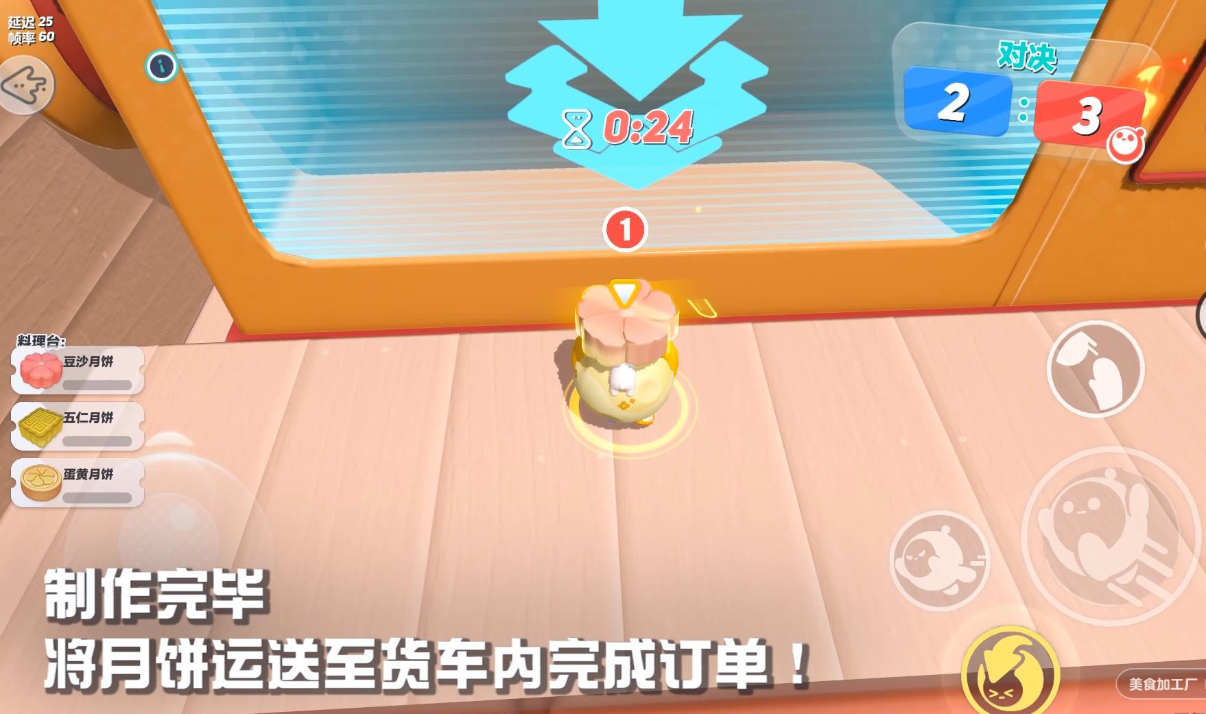 在2v2合作玩法“美食加工厂”中,蛋仔需要与队友同心协力,制作月饼。在赛场边缘的货车顶部,会显示队伍的订单需求,蛋仔需根据订单提交相应口味的月饼。每完成一笔月饼订单,都将获得相应积分,在规定时间内获得积分数多的队伍获胜。