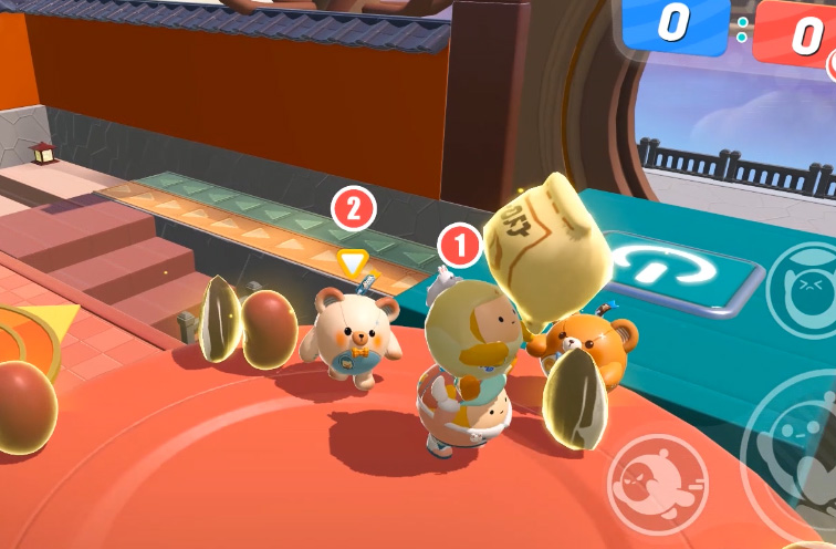 场中设有多个<开关>按钮,小队成员可以利用<开关>升起炮台,干扰对手。也可以相互配合,利用<开关>控制己方地形的改变,高效完成月饼制作任务,获得更多的积分!