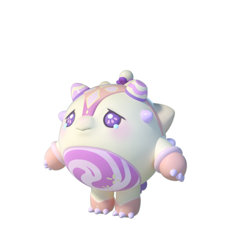 “甲龙晶晶”紫色的大眼睛里总是充盈着泪水,肚皮上的紫色漩涡和她头顶的两只双色圆形龙角相呼应,十分梦幻。身后粉紫相间的背甲一直延伸到额前,点缀着梦幻的淡粉色菱形花纹,但这不仅仅是装饰,更是保护自己和朋友的利器。重要时刻她说不定会克服恐惧,挺身而出,成为伙伴的守护神!
