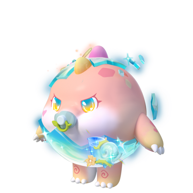 “暴龙崽崽”全身都是软萌的肉粉色,肉嘟嘟的粉色脸蛋微微鼓起,更显幼态可爱。碎裂的半透明蛋壳被梦幻的蓝粉色流光覆盖,头顶上微微凸起的小刺一路延伸至尾巴末端,这正是她暴龙身份的象征。就算还在用奶嘴,也不影响实力的发挥,吹响号角,占领土丘,暴龙崽崽迈出统治龙蛋岛的第一步!