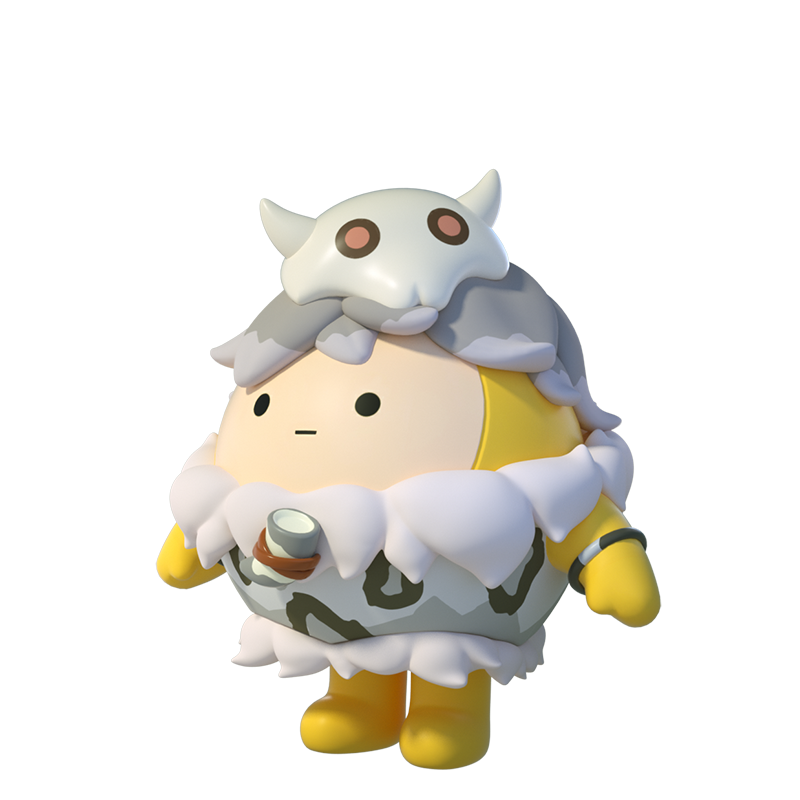 虽然“原始蛋少年”年纪小,但却有着成为部落英雄的远大目标。年轻的他身穿蓝灰色兽衣,精心打理的毛绒领口上还点缀着三片会散发荧光的圆古树叶;潮流的绿色锅盖头上海用一根骨头进行装饰,处处彰显着他的活力。
