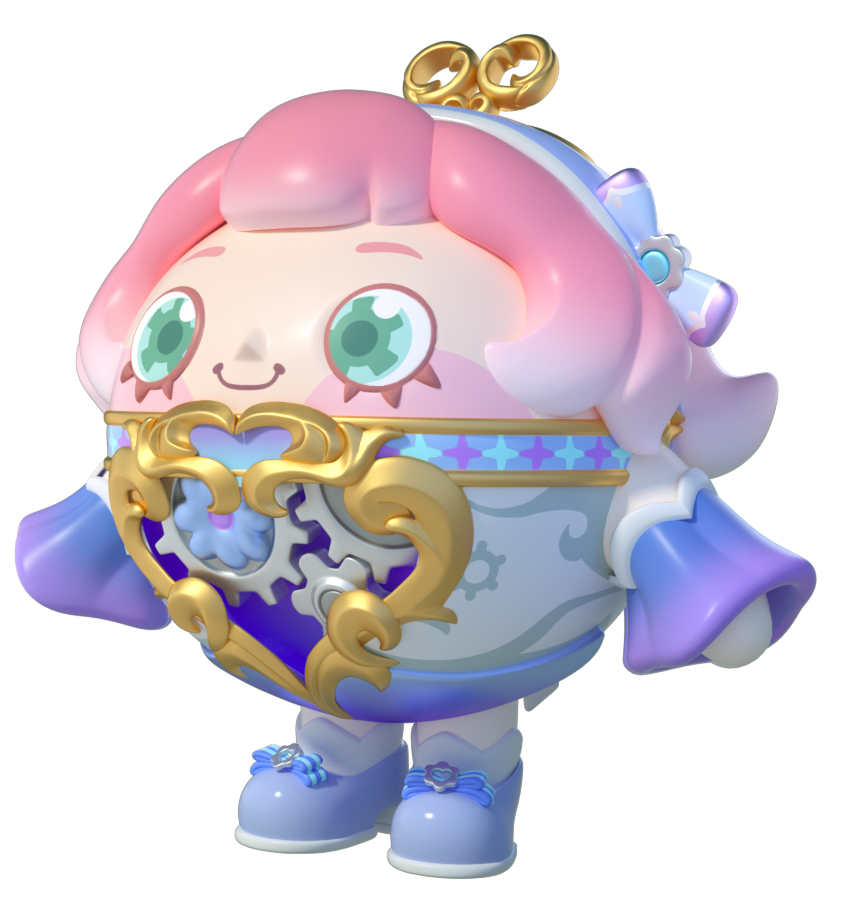 优雅精致的妆造,量身定制的发条,“八音盒温妮”时刻保持着良好形象。粉色渐变的短发整齐服帖,绿宝石般的眼睛闪烁着音乐家的智慧之光;胸前的复古洛可可齿轮装饰与头顶的金色发条相呼应,机械的外表下藏着的是如头顶蝴蝶结饰品般柔软的灵魂。