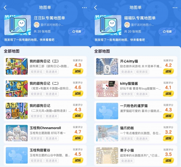 汪汪队&喵喵队出动!乐园大作战等你来战,丰厚大礼等你领~即刻上大神APP添加《蛋仔派对》圈子,参与乐园大作战活动,挑选猫/狗的阵营游玩相应的地图单,即有机会赢取丰厚游戏道具好礼!