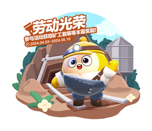 4月30日至5月16日,“劳动光荣”五一特别活动开启,完成任务即可免费领取外观“矿工套装”、表情“开挖”、表情“劳动最光荣”、劳动红旗头像框、劳动红旗昵称框等奖励。头戴带灯矿工帽,身穿耐脏工作服,换上“矿工套装”,深入漆黑地底,开拓光明未来!
