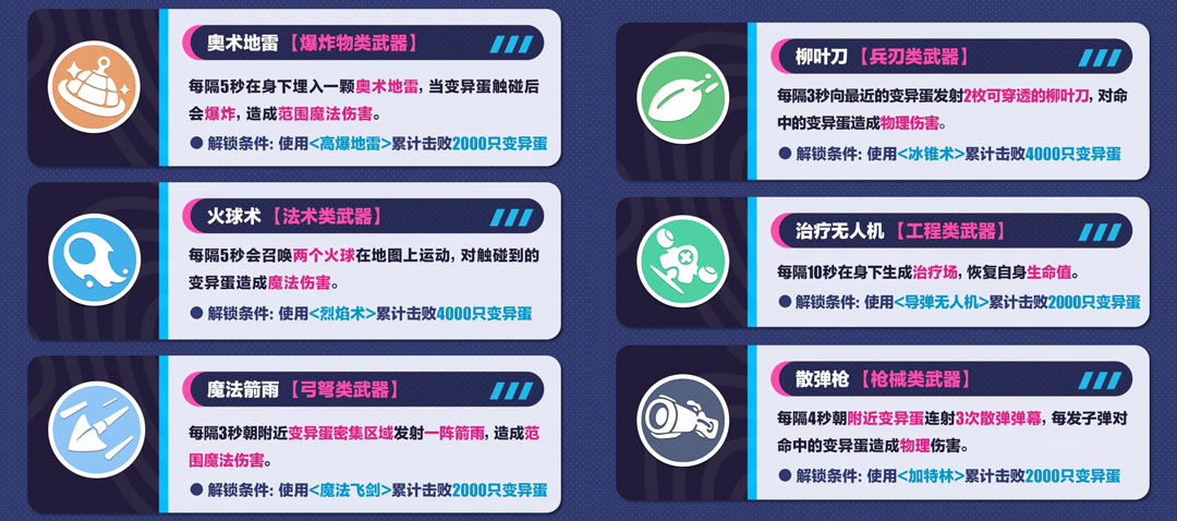 当蛋仔在“变异蛋狂潮2.0”中使用任意工程类武器击败2000只变异蛋,即可解锁全新职业“实验蛋”。作为将毕生精力奉献给蛋仔文明的科学怪蛋,他能够将实验成果灵活运用在战斗中,向变异蛋展示科技的力量。当他使用技能“爆破实验”时,他将消耗一半生命值来引发一次爆炸,消灭半径8米内所有非BOSS的变异蛋。同时,他的职业被动将使他在选择血清时获得一个额外的选项,击败BOSS后更可以同时选择两个血清,但相应的受到伤害提升20%。
