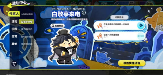 叮铃铃,大魔术师白敬亭电话已接通,速速和小白在线唠嗑!11月8日起,小蛋仔们可前往电话亭给白敬亭打电话,完成相关任务即可获得“白敬亭快捷语音”。
