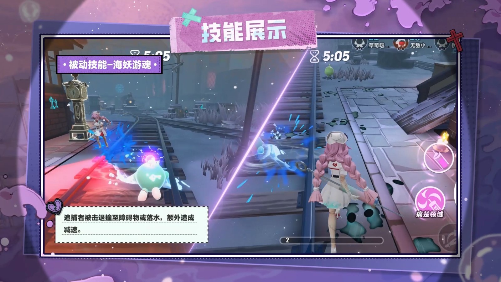 ——[逆潮钢叉]:点按或长按技能,朝选定方向投掷带有击退的钢叉。追捕者被击退撞至障碍物或落水,额外造成减速。