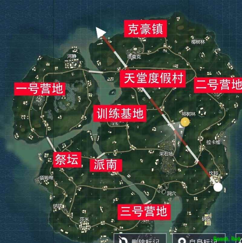 天堂度假村位于地图北部,资源丰富且等级高,交通便利,吸引大量玩家降落,竞争激烈,危险程度极高。
