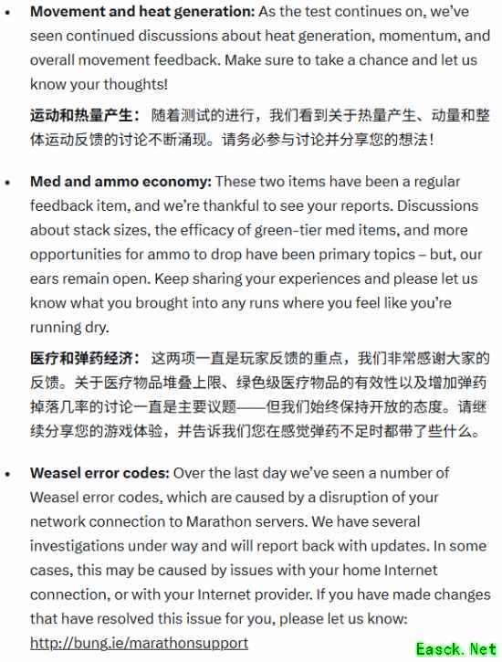 《失落星船:马拉松》开始压力测试以来,其评价存在巨大争议,而Bungie官方发帖承认了目前存在的,由玩家重点反馈的多个问题。