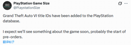 《GTA6》将于2026年11月发售。近日游戏博主PlayStationSize发现,R星已在PlayStation商店后台添加《GTA6》的“标题ID”(titleIDs),这或许意味着预购将在近期开启。