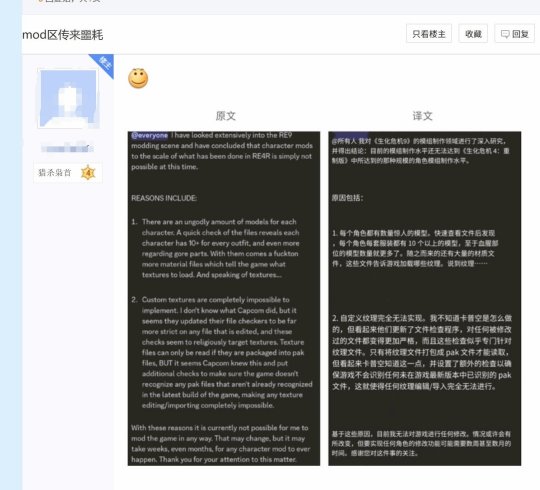 在Steam社区中也有人对此表示担忧。他们认为《生化危机9》游戏模型可能添加了反Mod保护,并质疑为何要限制玩家创作。Mod不仅能提升画质、修复Bug、增强无障碍体验,还能在官方停止更新后延续游戏寿命。限制这些功能,就是在“倒退”。