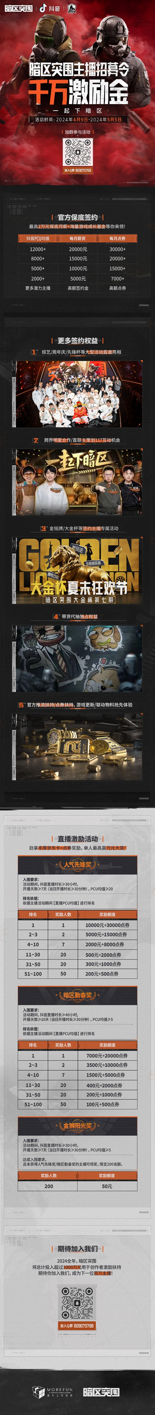 暗区联合各大顶级MCN发起“暗区最强合伙人”主播招募,涵盖宠格星球、畅玩文化、HW电竞、聚猩智媒、鲸鱼游戏、甚杰文化、SNK、碎星文化、薇龙文化、小象大鹅、众乐互娱等顶级MCN,覆盖B站、微博、抖音等各大平台,就等着和你一起下暗区,见证下一位暗区顶流的诞生!最高可得2万保底月薪,海量成长基金等你来领,更有各种签约福利,助力共同成长。2024年,暗区将累计投入1000万元用于生态建设,还在等什么?让我们一起上暗!