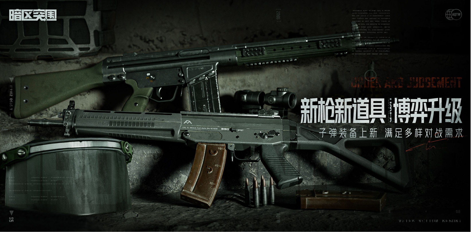 「地下法则」版本亦迎来一批全新武器以及防具,供先锋们选购装备。全新势力武器【SG550突击步枪】、【G3突击步枪】、全新军用款防弹面罩【DK8军用防弹面罩(4级)】,新的投掷物单兵携行型高性能震撼弹【K-58震撼弹】以及新瞄具【4倍率组合红点准镜】。伴随着武器和防具的升级,先锋们的作战能力将得到明显加强!