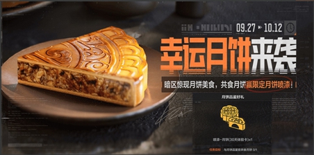 中秋佳节将至,暗区邀你赏月品月饼。大量幸运月饼出现在暗区,分享食用即可获得好运!先锋在全地图搜寻并食用“月饼”道具,概率获得兴奋、坚毅、镇静状态或「神秘惊喜」——邀请月饼品鉴官对局,在局内共同食用同一份月饼即可获得月饼喷漆(30天)!