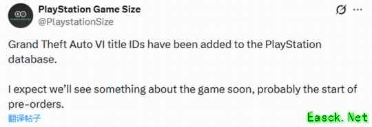 至于《GTA6》预购何时上线,PlayStationSize在回应网友时预估:“具体时间完全看发行商安排,我也说不准。但我觉得不会等太久。”