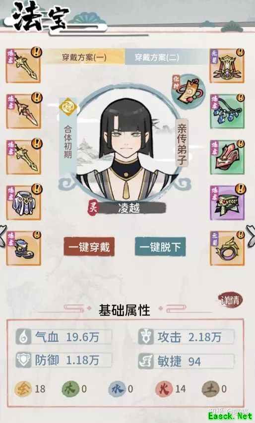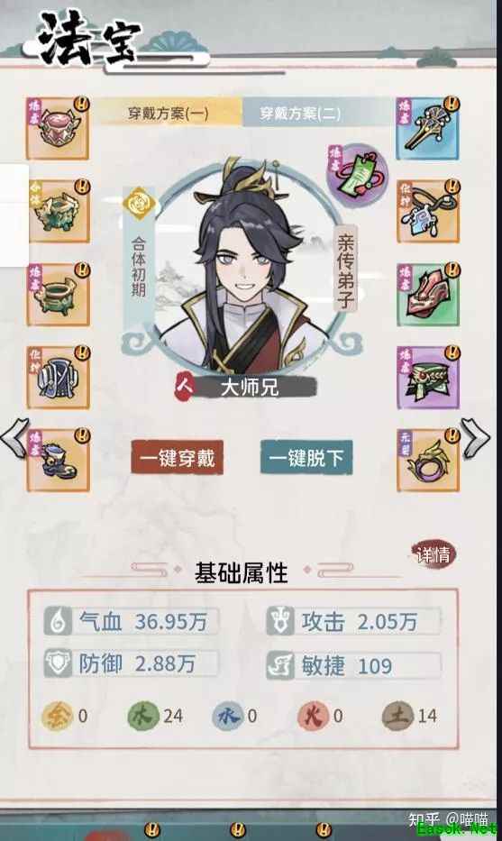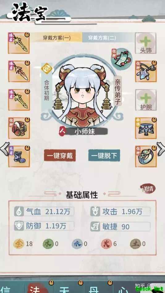 接下来谈谈零氪玩家中的两位代表人物:李久行与黑胶。李久行在十五级时专注制作衣服,而黑胶十四级就开始打造饰品。由于不花钱,自然无法购买典籍书籍。因此我们的策略是:衣服选择练虚期的防御装,饰品则选用化神期的攻击类。此时需注意,秘境挂机等级切勿过高,务必根据自身炼器能力合理设置。对于饰品而言,元婴与合体期之间的攻击差距并不明显;而衣服的核心在于减免伤害。因此建议谨慎行事,前往商船采购材料,打造一套稀有品质的练虚免伤衣,并镶嵌秘疗与爆发类御魂。完成后,可在挑战掌门时稳站前排承担伤害,原先的水盾即可淘汰。队伍配置方面,大师兄携带印记与两座木鼎;另一位角色则以辅助为主,装备金盾、减防锤及火遁技能。其出手速度必须快过敌人,优先为前排施加护盾,随后便可专注于观察掌门输出,完成高效作战。