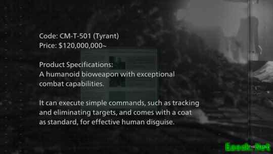 在位于浣熊市废墟下的"方舟"实验室里,玩家可以找到一些终端,里面存有公司内部的产品目录。这份文件日期标注为2026年,包含了该公司向全球军方供应的生化武器的当前报价。其中显示,暴君1.2亿美元、植物43一亿美元、地狱犬3000万美元、舔食者1400万美元。