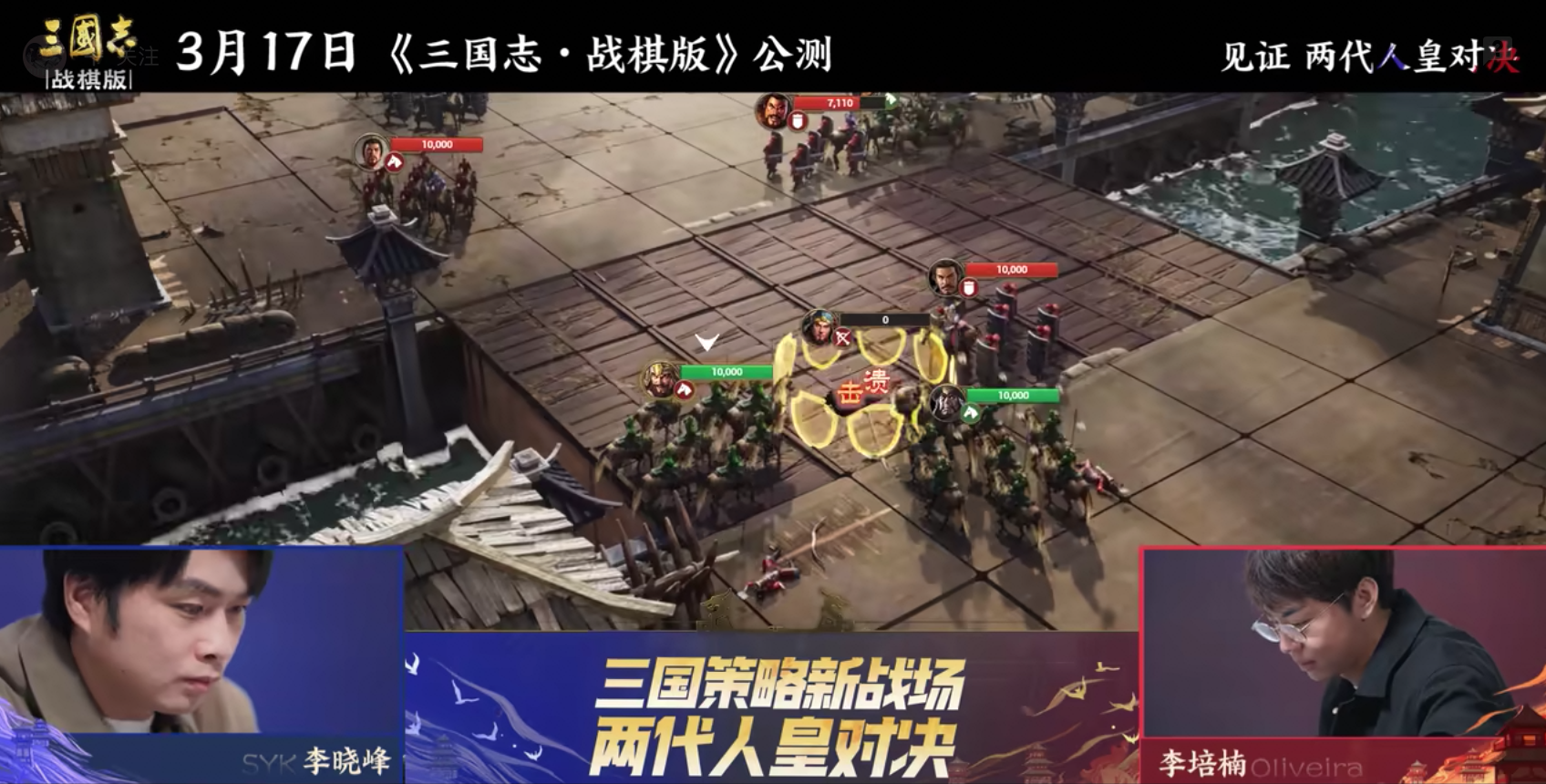 在公测开启当天,《三国志・战棋版》邀请了被广泛誉为“电竞人皇”的Sky李晓峰与Oliveira李培楠,二人不仅分享了自己对游戏与人生的看法,还把各自在RTS的理解融汇到《三国志·战棋版》中,用战棋一决高下,看看谁才是“真正的李哥”。