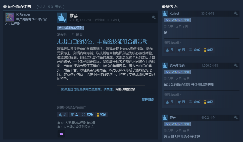 其实早在去年,《火炬之光:无限》就已经完成制作并先行登陆海外,在海外玩家圈中成功收获了一波好评。首先是在Steam平台,无限刚上架之初曾因登陆过于繁琐、引导教程不够完善等问题收到了一些差评,但官方很快做出了相应的优化。