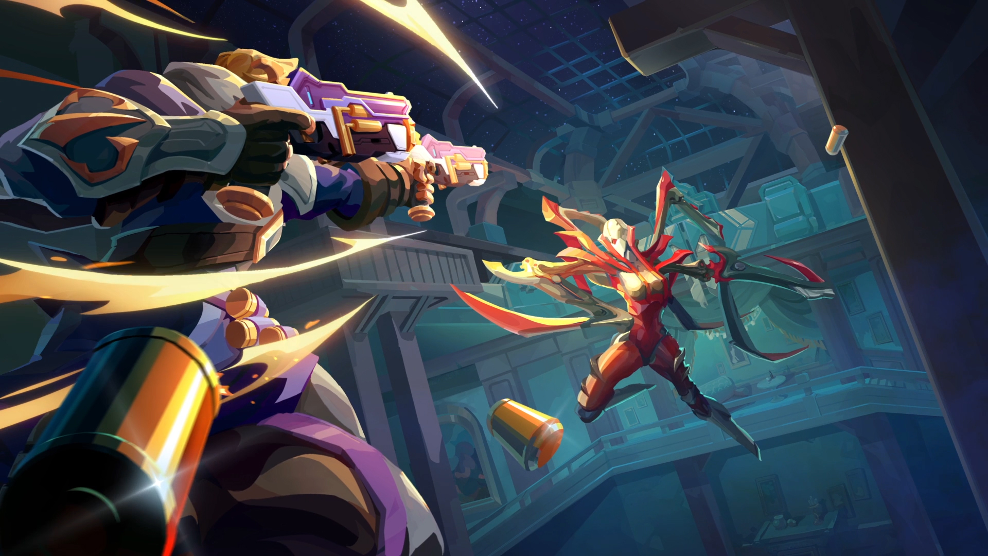 伴着残破的窗帘洒下的斑驳月光,卡里诺凭借敏捷的身手与致命的子弹轻松击败众多异魔,官方凭借这短短两个镜头就暗示了卡里诺的两种英雄特性“致命掠影”与“弹药专家”。当他直面已经被感染的老师,他举起手中的枪,用自己的实际行动向她证明,他会为了坚守的正义赴汤蹈火。
