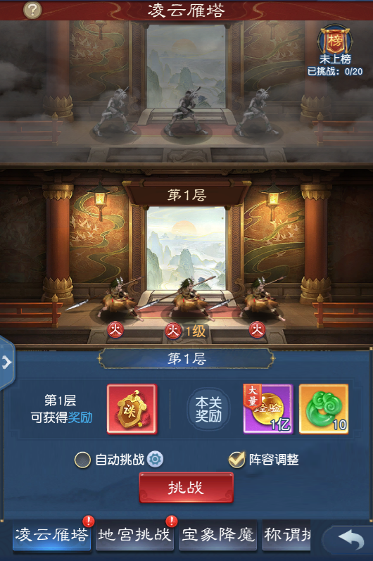 随着各路少侠修行境界突破,开启“飞升”,专属于飞升玩家的凌云雁塔来了!飞升后,凌云雁塔将不仅是少侠们获取资源的“宝矿”,更是验证各个五行伙伴、守护实力,和考验队伍整体实力的重要阵地。