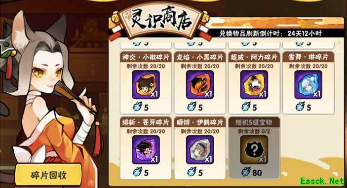 在灵识商店,可将多余的作战忍者命格碎片按5:1的比例兑换为灵识,用于换取其他角色命格碎片。