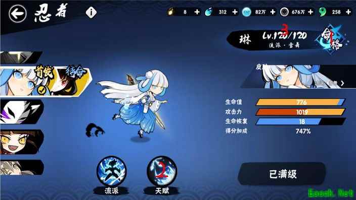 四命伊鹤、四命洛青、四命星闪、六命老板娘、六命银枭以及六命兮兰在培养到位后可作为主力忍者(T1),但其表现依赖高命格,机制与系数也弱于同命格的紫原卫鲤隼白组合。