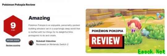 现IGN对其给出了9分的好评,称:《宝可梦Pokopia》是一款令人愉快、个性十足的建造模拟器,设定在一个出乎意料地深邃的世界中,充满了各种有趣的事情,供它那可爱的百变怪主角去完成和创造。