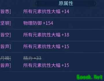 两条全元素抗百分比属性固定,可惜部位为帽子,选取时需权衡利弊。