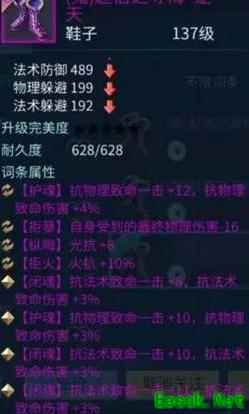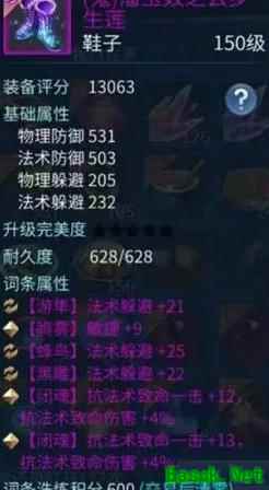 如同上述鞋子,采用固定三法躲加敏捷词条搭配,敏捷本身附带闪避属性,结合150鬼的高基础闪避,足以顺利毕业。后期洗炼可进一步追求双条或更多闪避属性的配置。