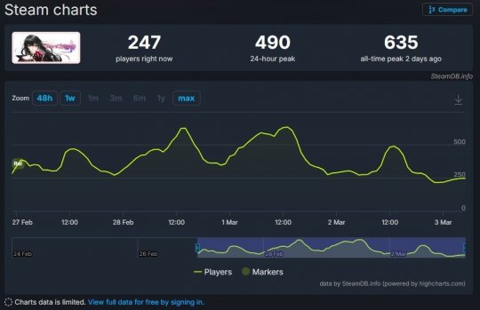 万代南梦宫推出的《狂战传说》高清复刻版在PC平台遭遇尴尬开局。数据显示,这款2016年经典JRPG的更新版本在Steam平台的首发同时在线玩家峰值仅635人,截至发稿时已跌至250人左右,与原版当年近8000人的在线峰值相去甚远。