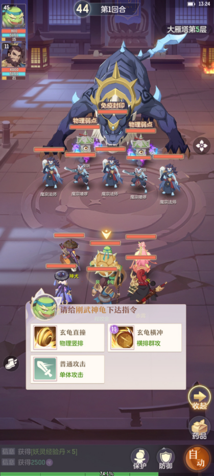 PVE方面,传统的大地图踩雷遇怪被简化为一个门槛性质的“挂机”过程。玩家可以通过刷地图上的真灵塔拿到升级所需的基础资源,每通过一层还可以提升自己的挂机收益,爬塔层数越高,排名越高,挂机收益就越多,暂时不上线也可以拿低保。每周的十二妖将挑战玩法,玩家们还可以组成三人及以上队伍挑战,成功即有可能获得妖灵装备、神兽之魂等珍稀奖励。