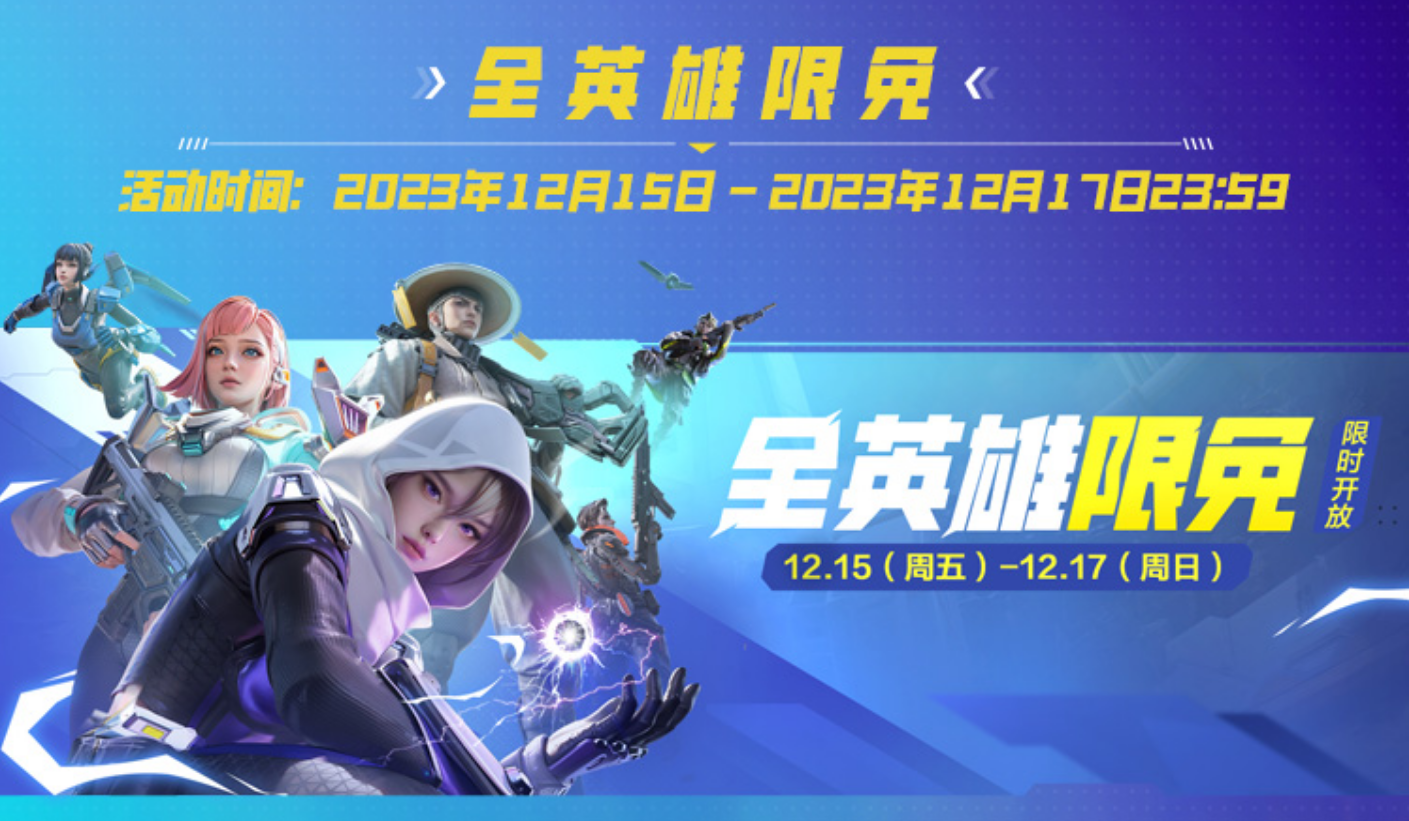 在2023年12月15日-2023年12月17日活动期间,玩家登录游戏即可享受周末全英雄限时免费体验活动,英雄相伴,作战不孤单!