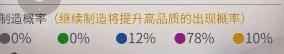 每次制作时,无论成品颜色如何,均有2%概率从蓝色转移至紫色,直至紫色达到90%、橙色10%;此后每次制作再从紫色转移2%至橙色,直至橙色升至100%。