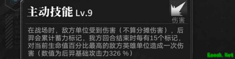 嫦娥的主动技能原本造成15次伤害,升至满阶后提升至21次,释放技能后额外附加9次伤害,总计达到30次伤害输出,相当于加特林连发30颗子弹。接下来看看后羿的技能表现如何。