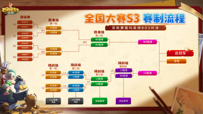 全国大赛S3的赛程赛制在每个赛程环节上都做了一定程度的优化调整。其中最突出的有两点,一是进入8强赛后,将引入全新的【双败淘汰赛】机制,即通过胜者组和挑战组的双线机制,让不慎失利的队伍有反败为胜的机会,降低翻车概率;二是所有的BO3比赛中都有禁用天赋环节,更加考验战队的阵容深度。