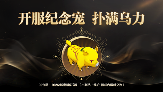 10月26日下载并注册游戏后,只需在游戏内通过礼包码“1026重返腾讯石器”,即可获得扑满乌力一只。