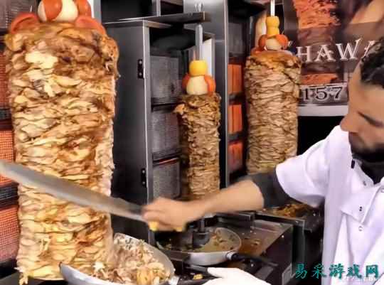 别人解释说,这款游戏的“3A”不是我们通常理解的那个3A,而是:AI绘图、AI配音、AI编曲。 这款游戏出自土耳其制作人Eyad Al Shafei之手,玩家在游戏中扮演“卷饼大师”,为顾客制作沙威玛。 沙威玛是黎凡特阿拉伯的烤肉美食,肉块串在烤叉上慢烤,可以烤上整天。在土耳其,到处可见这款美食,当时我把它称为“竖式BBQ大肉棒”……