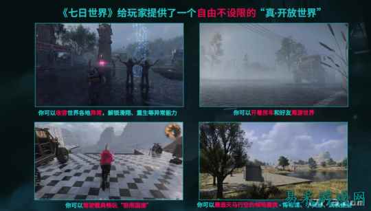 此外,得益于《七日世界》完全对标PC平台研发,在演出和氛围沉浸感的画面塑造上,完全不逊色市面上的一流超自然题材单机游戏。 以上差异化内容所带来的“高级感”,一度让我们在CJ现场玩的十分上头,停不下来。 除了题材和品类玩法,《七日世界》另一特色在于通过剧本赛季制方式推进世界循环演变。 剧本赛季制的意思是指,通过一个个包含不同环境、玩法、规则和叙事内容的全新剧本,来完成每一次的版本替换,使得玩家在《七日世界》中能周期性的获得全然不同的游戏体验。 之所以会采用剧本赛季制的方式,我们在与现场的工作人员简单沟通后,有了一些理解。