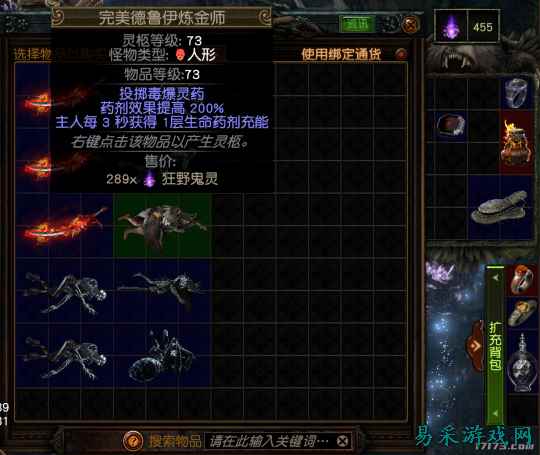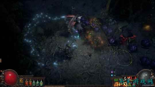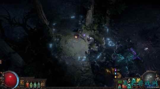 之后,荒林的另一个机制是鬼灵。这些不同颜色的鬼灵一方面是你在地图里购买赛季物品的通货。事先说好,出图就没收。 另一方面,这些鬼灵还会在不同程度上强化地图里的怪物。各位玩POE的都知道,早期玩家很缺混沌抗。偏偏荒林里运气不好会刷很多“密教”派系的怪物,他们的招牌技能就是大量混沌伤的毒雨AOE。