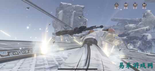 这一方面显然受益于《庆余年》网剧的播出,剧中的场景布置为游戏建模提供了大量的参考,使得游戏在对文本还原的过程中减少了大量的打磨构思成本。 在神庙场景的架构上,我们能看到庙旁的杂草灌木、门口的巨石,台阶上的积雪,以及科幻风的围墙等多个元素,增加了场景的视觉丰富程度。