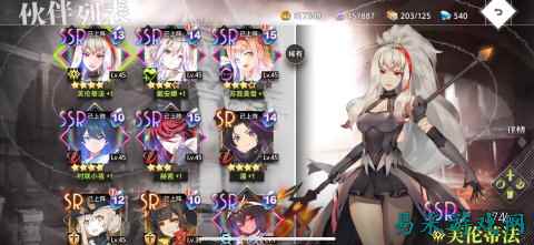 加上游戏里过关送的大量钻石、每日任务送的抽奖券、签到奖励、活动奖励等多个内容,粗略估计一下开服一周时间大约白嫖了近200抽。 游戏的抽奖概率也相当迷惑,它完全无视什么低保准则,每次十连至少2个SR起步,最多一把我抽到了5个SR,至今我已经白嫖了大量的SR和6个不同的SSR(抽到过相同的)。