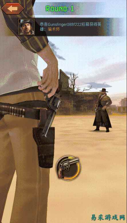 “决斗”分为两个阶段,刚开始要进行“走位”,也就是调整站姿,对手往左移动,你就要朝着相反方向移动,笔者刚开始并不明白走位的目的,但仔细思考之后发现,这套游戏机制还真的非常符合实际。因为两点之间直线最短,对抢手来说,只要对方在自己正前方,拔枪后,便不需要左右调整手枪的射击方向,既减少了思考步骤,又提高了命中率,只比拼手速,可谓是三全其美。而游戏不仅将这一点真实地体现出来,同时也让人在这缓慢的移动中,体验到一种紧迫感,好像稍微一放松,就有可能错失良机。