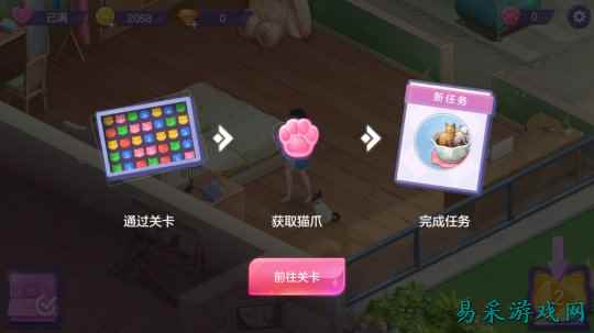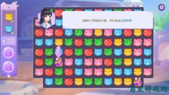 游戏以女主角晓晓与猫主子奶糖相遇相识为主脉,并通过“三消”这一玩法贯穿游戏主线的所有行动。玩家需要打通关卡从而来获取“猫爪”印记,并消耗“猫爪”印记来完成主线任务。这部分虽然有些出戏的问题,不过也是当下所有休闲类游戏的普遍做法,倒没有什么可以较真的余地。